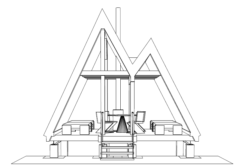 Útulňa je samostatne stojaci, nepodpivničený, jednopodlažný objekt s priehľadnými a presklenými štítmi, prestrešená dvojicou strmých sedlových striech, ktoré siahajú k podlahe so spoločným úžľabím pripomínajúc tatranské končiare. Budova útulne je priehľadnými priečeliami orientovaná na západ smerom k dominante Vysokých Tatier.